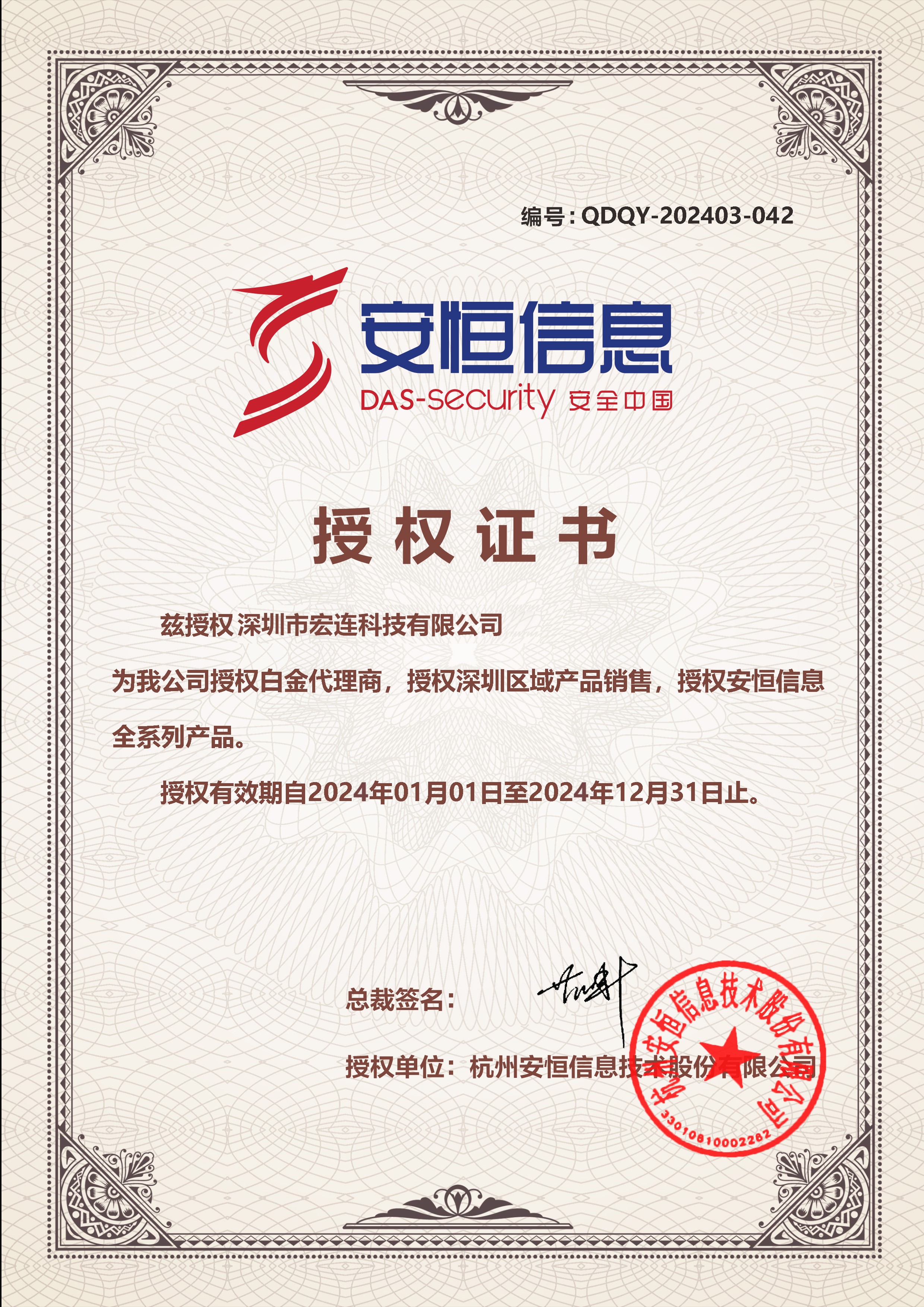 安恒白金代理商